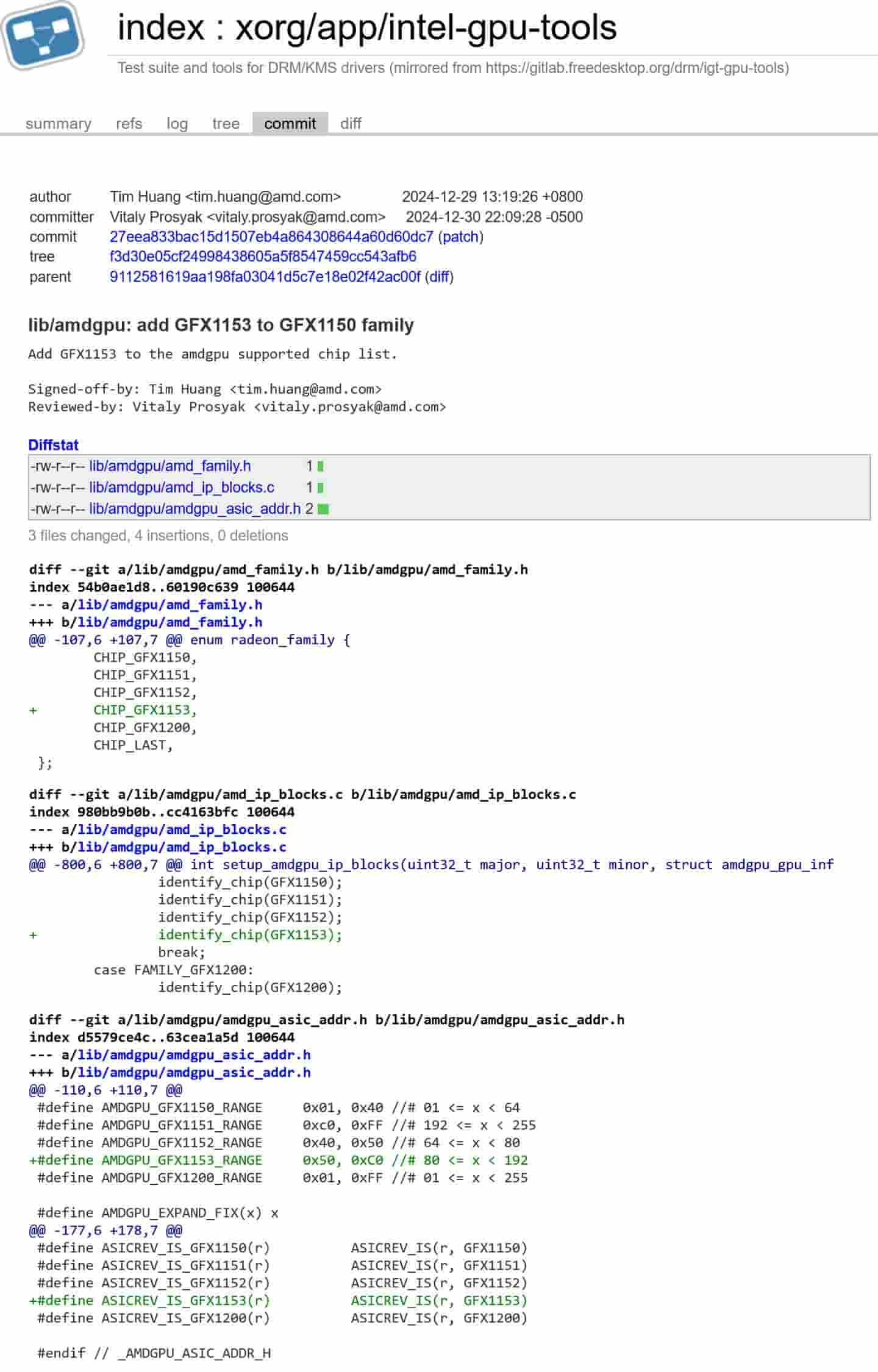 而现在,AMD工作人员在2024年底向DRM驱动开发和测试工具IGT GPU Tools中添加的代码再次揭示了GTX1150家族的新动向——一个新的成员GFX1153浮出水面。这一代号预示着又一款尚未明确的处理器的核心显卡即将面世。