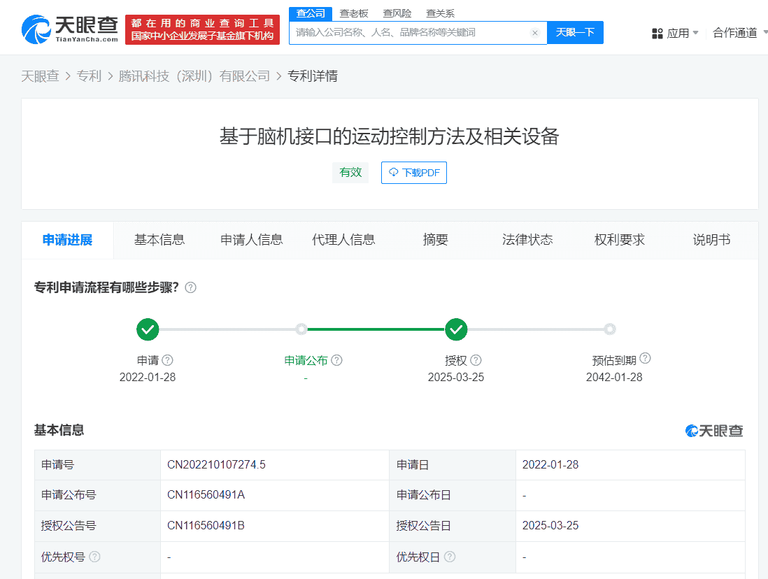 近日,腾讯科技(深圳)有限公司在脑机接口技术领域取得了新进展,一项名为“基于脑机接口的运动控制方法及相关设备”的专利成功获得授权。这一消息据天眼查财产线索信息得以确认。