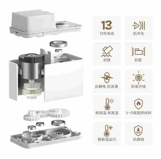 别看这款窗帘电机体积小,其性能却异常强大。采用多重精密设计,运行时噪音极低,不足30分贝,即便是夜晚使用,也不会打扰到家人的安眠。即便是厚重的绒布窗帘,也能在电机的驱动下,实现丝滑平稳的开合。整机经过严格的安全测试和可靠性测试,电机寿命长达13年之久,品质卓越。