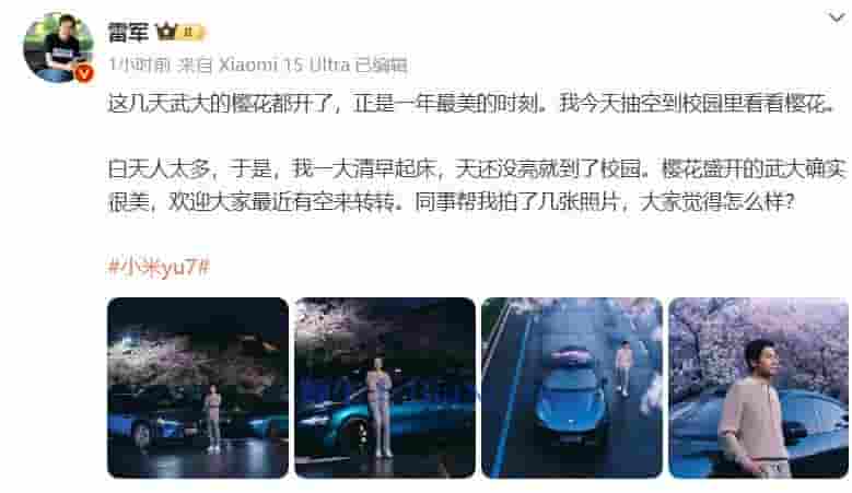 雷军的这组照片与文字,不仅展现了他对自然之美的热爱,也让更多人感受到了武汉大学的樱花魅力。不少网友留言表示,被这份美景深深打动,期待有机会亲自前往一睹风采。