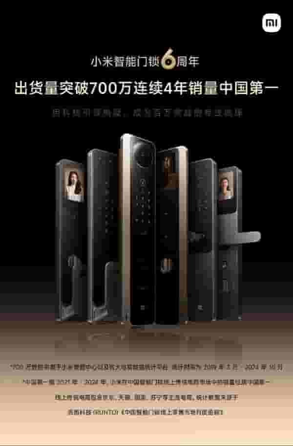 小米智能门锁热卖!700万出货量,连续四年蝉联国内销量冠军