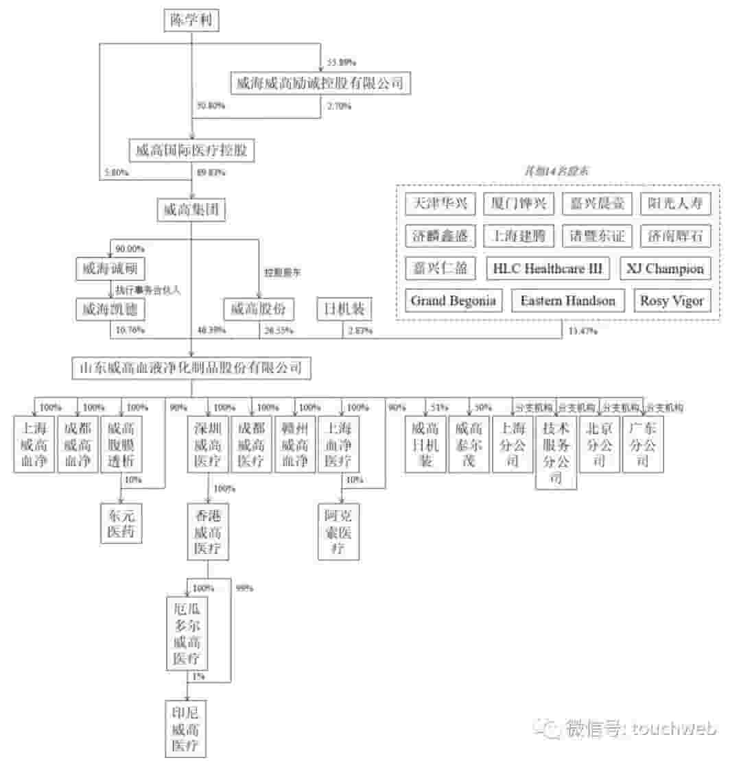 随着IPO的推进,威高血净的股权结构将发生一定变化。IPO后,威高集团的持股比例将降至41.75%,威高股份持股23.9%,而华兴资本旗下的三家基金持股比例也将相应稀释至1.26%。