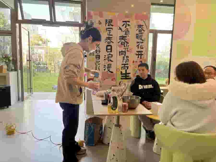 活动现场精彩不断,青年们在轻松愉快的氛围中迅速打破陌生感。自我介绍接龙环节让大家在共同完成任务的过程中自然开启对话。社区烘焙达人李慧现场教授戚风蛋糕的制作技巧,青年们分组合作,从称量材料到创意装饰,共同将美味的蛋糕变成了春日里的艺术品。专业教师还通过分步教学,引导青年们在双人SASA舞的节奏互动中培养默契,创造更多交流机会。