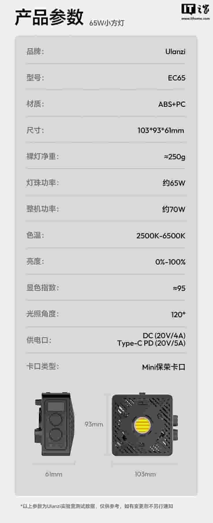 以下是“小方灯”的详细规格信息,供有兴趣的摄影爱好者们参考: