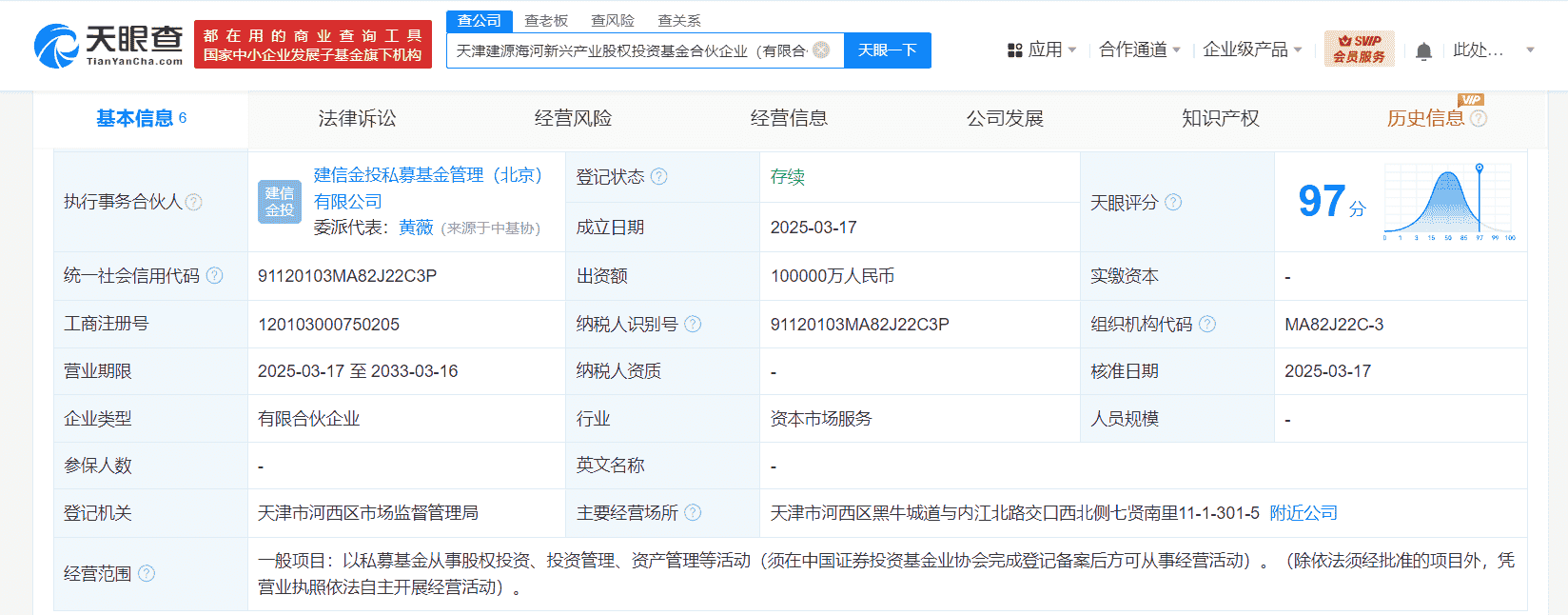 据天眼查进一步披露,天津建源海河新兴产业股权投资基金合伙企业的成立,不仅标志着这些企业在金融投资领域的深入布局,也预示着他们将携手在股权投资市场上寻找新的增长点。通过私募基金的形式,这些企业能够更灵活地运用资本,投资于具有潜力的新兴产业,从而推动产业升级和经济发展。