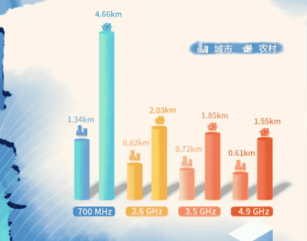 700MHz频段的覆盖能力远超其他频段。具体来说,其覆盖半径能达到2.6GHz的2倍、3.5GHz的2.3倍、4.9GHz的2.9倍。这一优势在应急通信领域尤为重要,能够大幅提升救援行动的效率和范围。