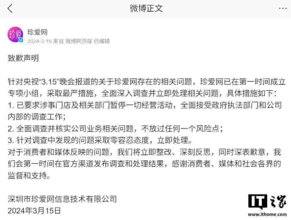 针对这一系列事件,珍爱网在其官方微博上发表了一份消费者权益保障工作声明。声明中,珍爱网表示对近日因个别合作商运营问题所引发的公众关注给予了高度重视,并已迅速展开全面的核查与整改行动。