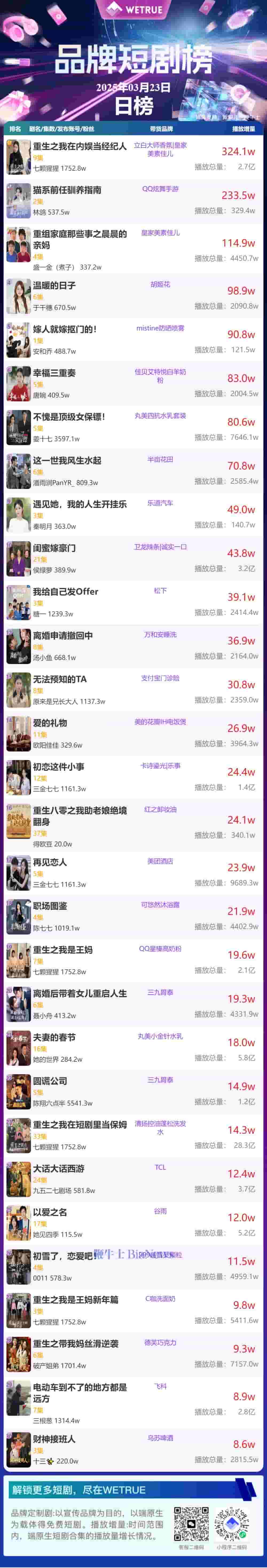 23日品牌短剧热度揭晓,《重生之我在内娱当经纪人》领跑榜单