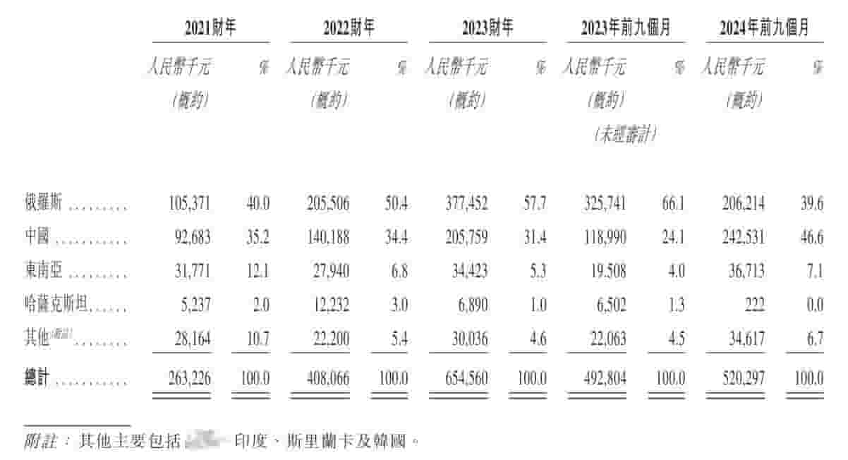 值得注意的是,婴舒宝的市场布局具有鲜明的国际化特色。其过半收入来自海外市场,尤其是俄罗斯市场,曾连续两年贡献超过50%的收入。尽管近年来俄罗斯市场的收入占比有所下降,但截至2024年前9个月,仍占公司总收入的近40%。同时,中国市场的收入也在快速增长,占比已接近50%。