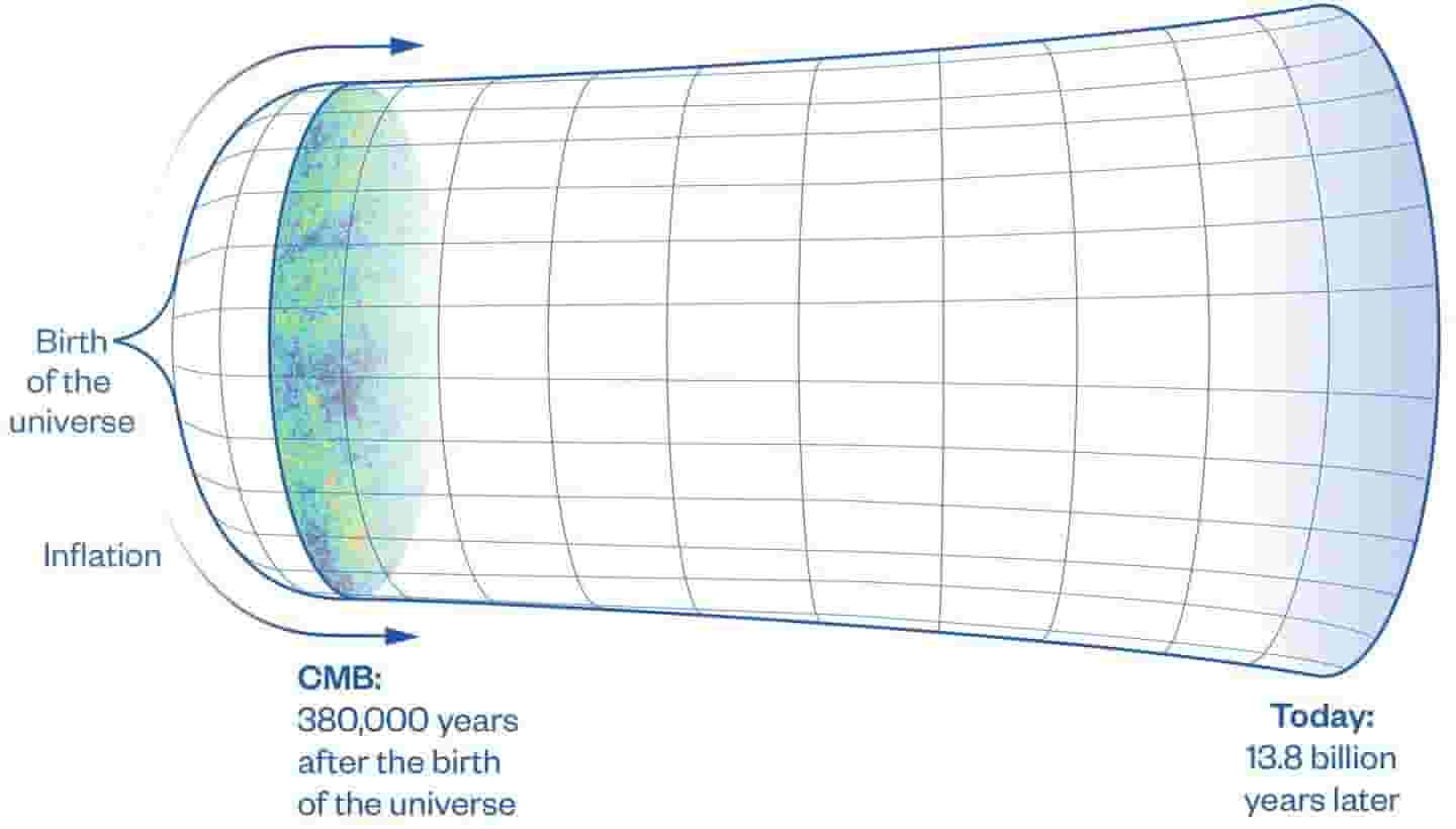 在一张精美的插图中,彩色条带生动展现了新图像所捕捉到的宇宙历史片段。宇宙微波背景辐射(CMB),作为大爆炸后遗留的微弱余晖,标志着宇宙从炽热混沌走向透明的关键转折点。此次发布的图像,通过智利阿塔卡马宇宙学望远镜的高精度捕捉,展现了CMB前所未有的细节。