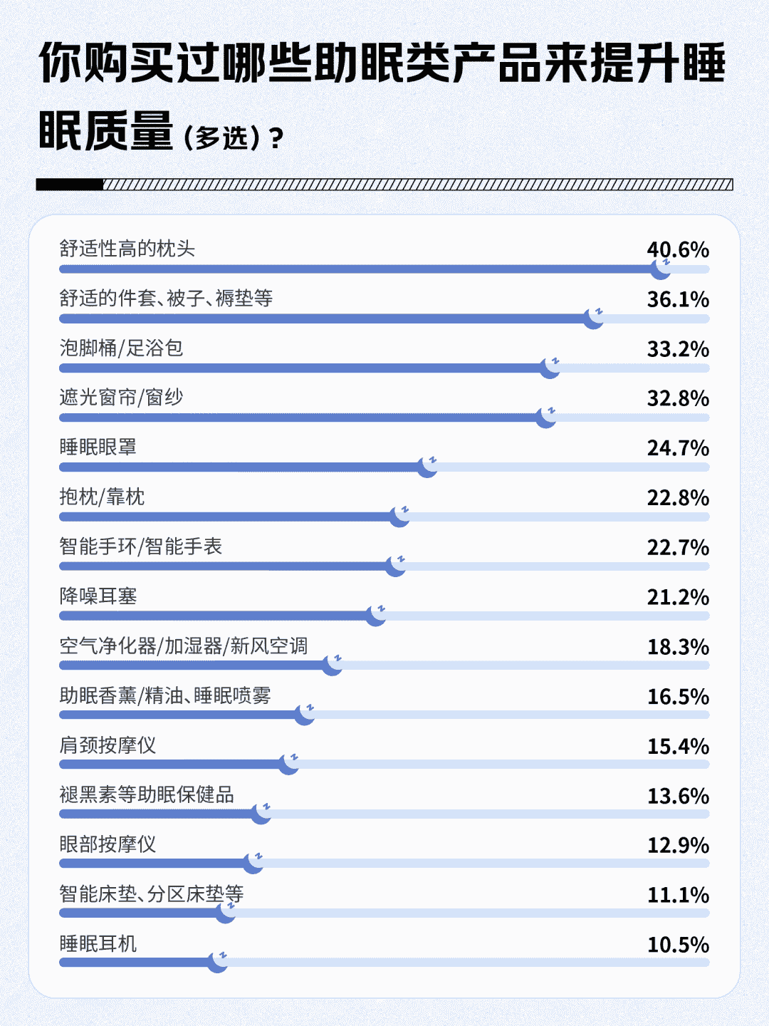 调研显示,像王忻这样保持常态化高质量睡眠并从中受益的人不在少数,占比高达34.2%。他们认为,“睡个好觉”如同万能解药,能够带来精力充沛、身心放松、提升记忆力和专注力等多重正面效应。对于白天紧绷的神经和累积的情绪,夜晚的睡眠无疑是最好的疗愈。