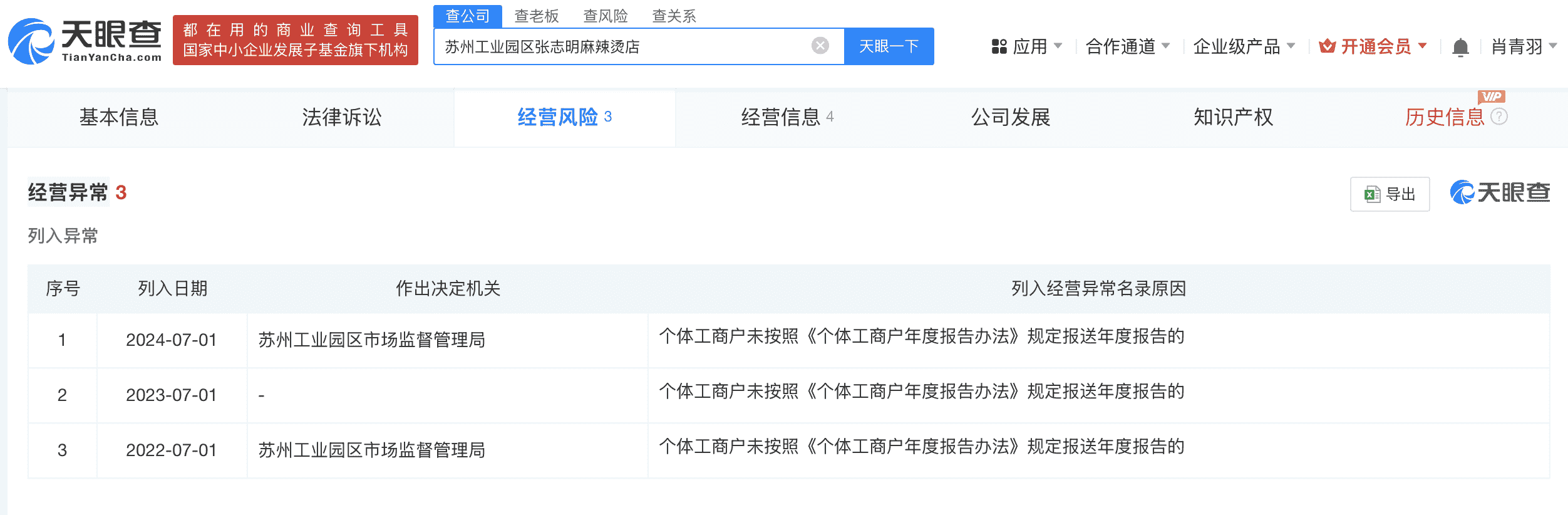 然而,值得注意的是,该店在经营过程中似乎存在一些不规范之处。据天眼查风险信息显示,从2022年至2024年,该店连续三年未能按照规定报送年度报告,因此被苏州工业园区市场监督管理局列入了经营异常名录。这一信息无疑给消费者对该店的信任度蒙上了一层阴影。