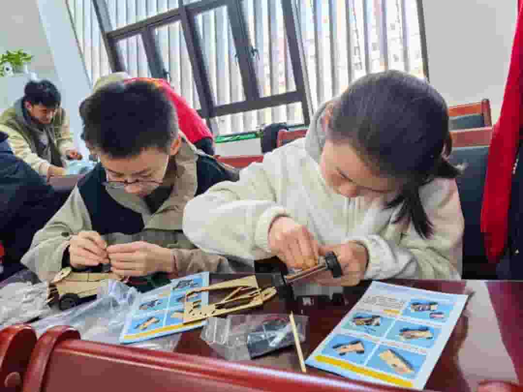随后,活动进入了动手实践环节。在大学生们的带领下,孩子们与家长一同动手制作太阳能小车。从组装零件到调试性能,每一步都充满了探索的乐趣。这一过程中,孩子们的动手能力得到了锻炼,对科学的兴趣也被进一步激发。