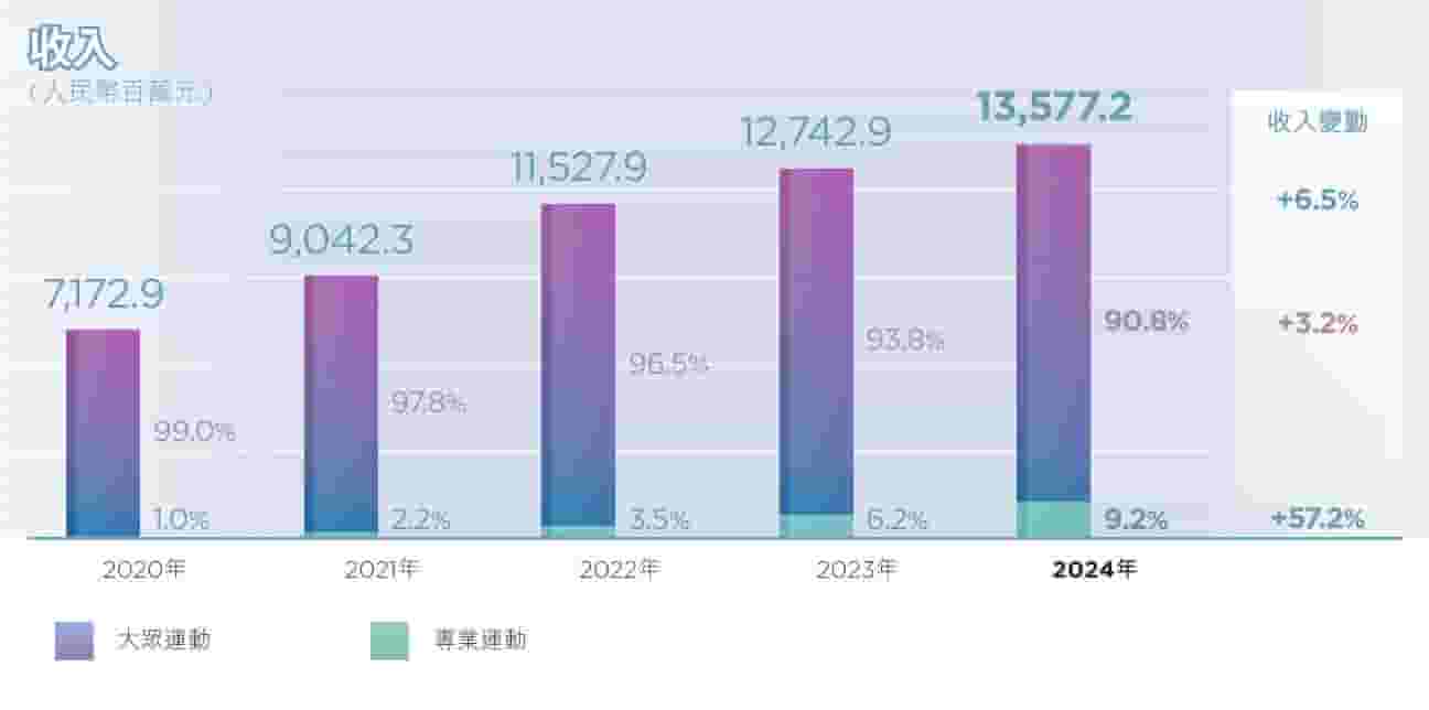 根据财报数据,特步国际在2024年实现了135.77亿元的营业收入,相比去年同期的127亿元,有了6.5%的显著提升。