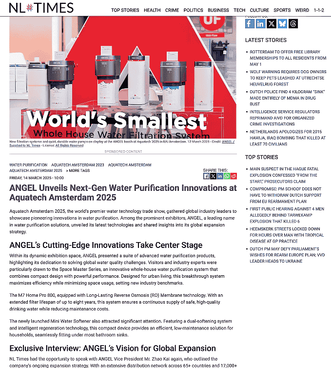 安吉尔2025荷兰水展大放异彩,全球净水科技引领者加速海外布局