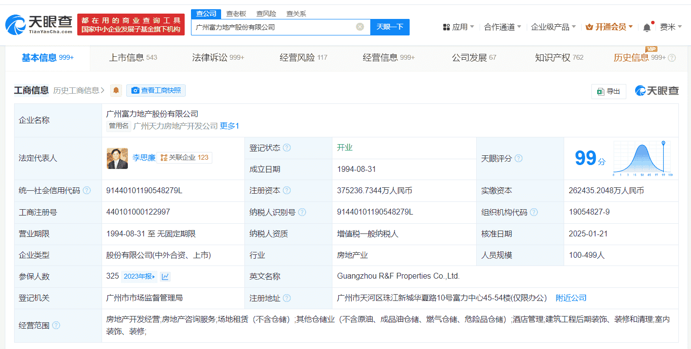 据天眼查进一步显示,富力地产此次股权冻结的具体原因尚未完全公开,但这一事件无疑引发了市场对该公司财务状况和未来发展的广泛关注。作为一家在房地产行业具有重要影响力的企业,富力地产的任何风吹草动都可能对整个行业产生连锁反应。