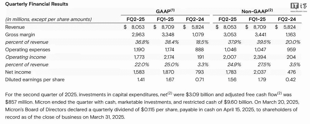 美光科技公司近期揭晓了其2025财年第二季度的财务业绩,该季度截止至2025年2月27日。