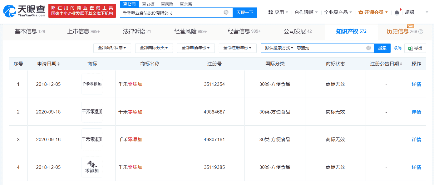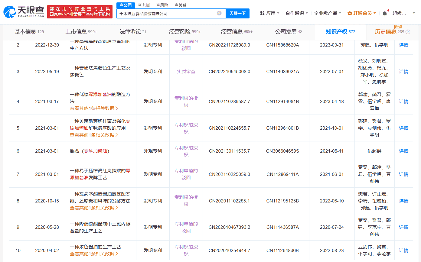 在知识产权领域,千禾味业已经成功注册了多个“千禾 0”和“千禾 0+”的商标。然而,值得注意的是,该公司申请的4枚“千禾零添加”商标却并未如愿以偿,目前均处于无效状态。尽管如此,千禾味业在“零添加酱油”方面依然有所布局,专利信息显示,他们已经申请了多个相关专利,例如“一种低糖零添加酱油的酿造方法”和“一种贝莱斯芽胞杆菌及强化零添加酱油鲜味氨基酸的应用”等。