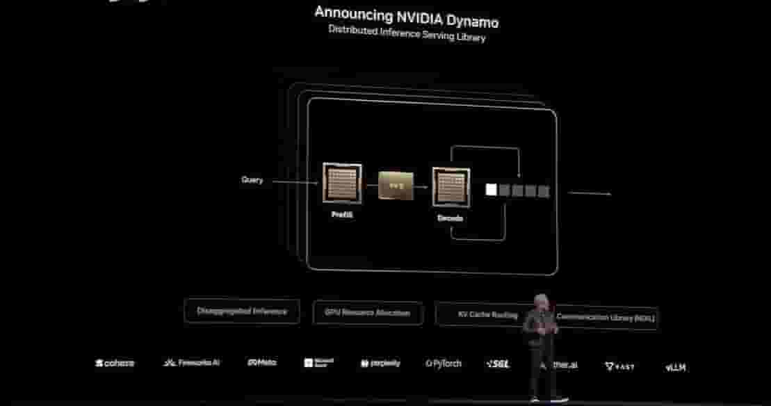 除了硬件升级,英伟达还提出了“AI工厂”的构想,旨在将计算机转变为生产Token的工厂。这一构想中,AI工厂能够根据用户需求全自动化地训练专属AI模型,实现AI模型的“千人千面”。为实现这一目标,英伟达发布了Dynamo系统,这一“AI工厂的操作系统”能够整合优化计算机资源,成倍提高Token生成效率。