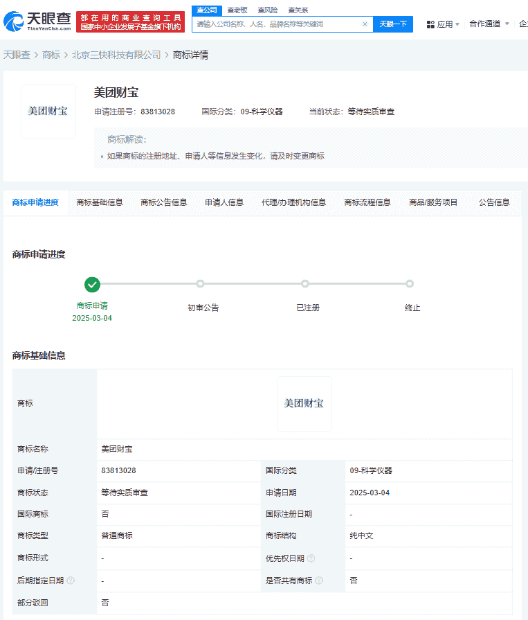 近期,美团旗下的北京三快科技有限公司在知识产权领域有了新动作。据天眼查信息显示,该公司已正式提交了一系列商标注册申请,这些商标名称别具一格,包括“美团财宝”、“美团才宝”以及“美团菜包”。