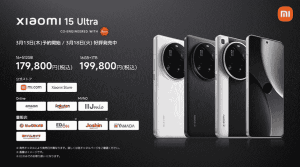 回顾小米15 Ultra在日本的发布历程,可谓备受瞩目。3月13日,小米15、小米15 Ultra以及REDMI Note 14 Pro 5G三款新机携手登陆日本市场。其中,小米15 Ultra于3月18日正式开售,凭借出色的性能和配置,迅速赢得了消费者的青睐。其16GB+512GB版本售价为17.98万日元(约合人民币8762元),而16GB+1TB版本则售价为19.98万日元(约合人民币9737元)。
