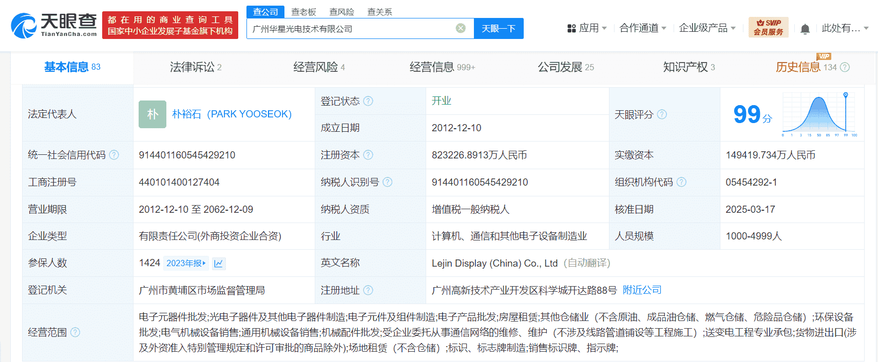 值得注意的是,乐金显示(广州)有限公司同样在近期发生了工商变更,企业名称变更为广州华星光电显示有限公司,LG DISPLAY CO.,LTD.完全退出了股东行列,而TCL华星光电技术有限公司则成为了全资股东。这一变动进一步巩固了TCL在显示技术领域的市场地位。