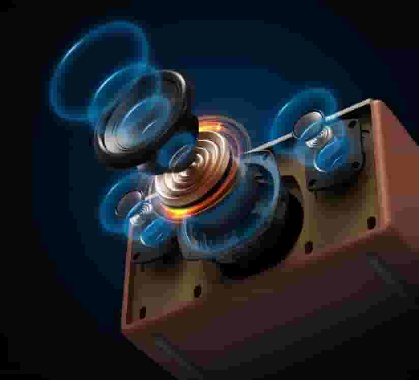 在操控方面,杰科Q25臻品音箱的顶部设计了一个交互中枢,采用金属旋钮与动态彩屏,支持旋转与按压操作,用户可以轻松完成播放控制与音效切换。音箱的声学架构同样出色,配备了2个25芯钕铁硼丝膜球顶高音单元和4英寸羊毛盆低音单元,组成了“2.1黄金声学阵列”,并提供五大场景音效模式供用户选择。