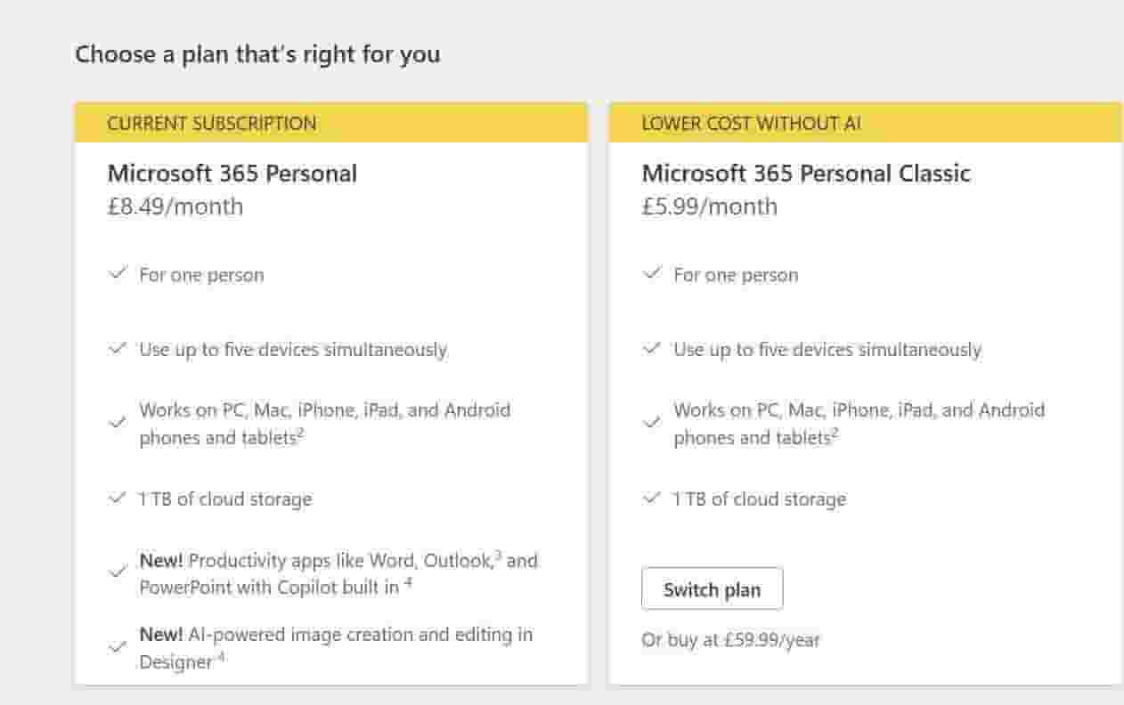 但值得注意的是,这一经典版本的选择权限仅限于现有用户。对于新用户而言,他们无法直接选择不含Copilot的版本,只能接受包含AI功能的新版本及其对应的价格。
