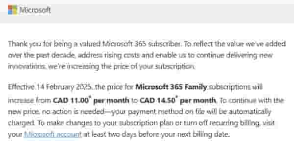 对于涨价的原因,微软给出了不同的解释。英国用户收到的通知中,涨价被归因于通货膨胀所带来的“必要调整”。然而,加拿大用户则未收到任何关于涨价原因或替代方案的说明,这进一步加剧了用户的不满情绪。