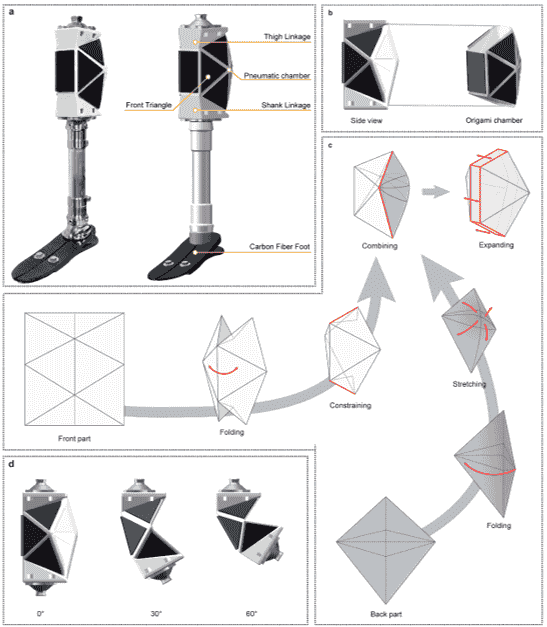 而王启宁教授团队的创新之处在于,他们首次提出了基于折纸原理的仿生软体膝关节假肢设计。这款假肢的主体部分采用热塑性聚氨酯材料,通过3D打印技术制造而成。令人惊叹的是,其膝关节单元的重量仅为300克,高度也仅有15厘米,大大减轻了使用者的负担。