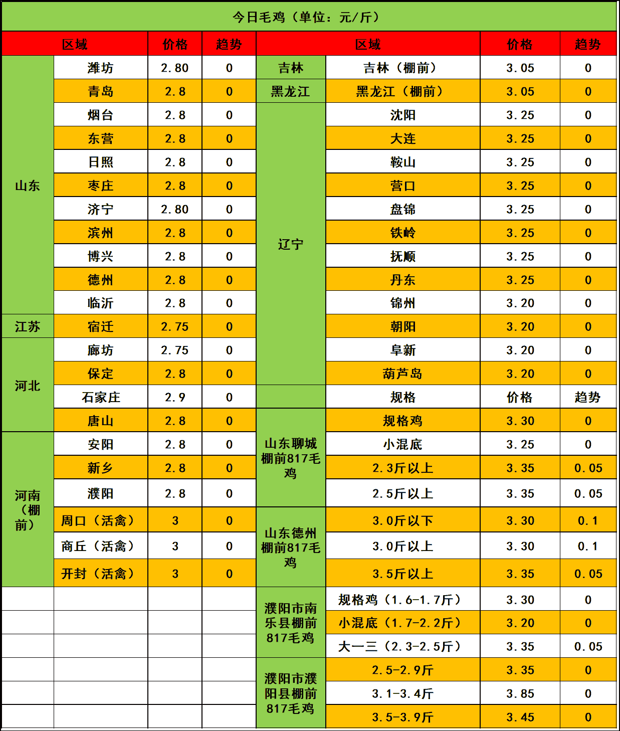 最后需要提醒的是,由于采集点和地点的不同,所报的817鸡苗、种蛋价格可能存在一定差异。因此,养殖户在参考报价时,需结合当地实际情况进行判断。同时,也建议养殖户加强与当地市场的联系,及时获取更为准确的市场信息。