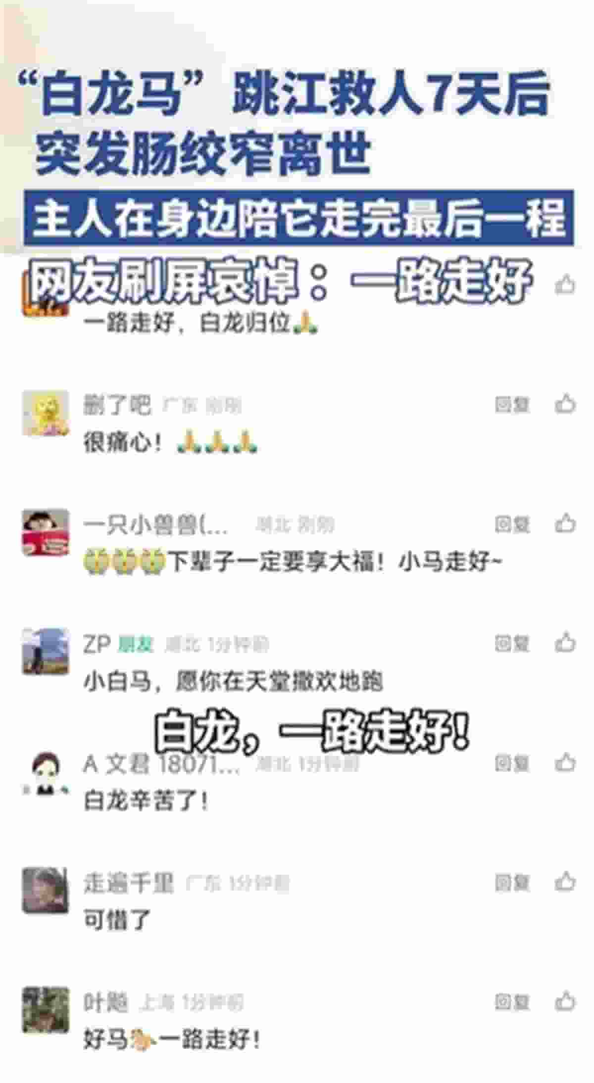 三人一马的壮举,赢得了全社会的赞誉。仙桃市迅速授予他们“仙桃市见义勇为先进群体”的称号,并为“白龙马”戴上了大红花,参加了表彰大会。然而,不幸的是,“白龙马”后因突发肠道疾病离世,消息传来,全网哀悼,网友们自发为这位英雄白马设立了专属词条,表达了深深的敬意和怀念。