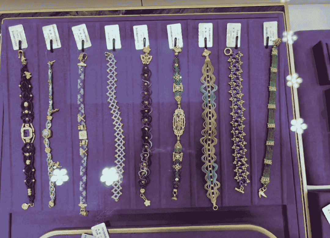 除了黄金价格高昂外,编绳首饰店的编织费用也不容小觑。当各大金店仍将免费编织作为附加服务提供给消费者时,编绳店铺已将“编织”作为主打业务,并开启了高昂的编织收费服务。以“结绳记”为例,一条普通成人手腕周长的手绳,最简单的粗四股编绳费用至少60元,若再添加结扣等装饰,费用则高达百元。