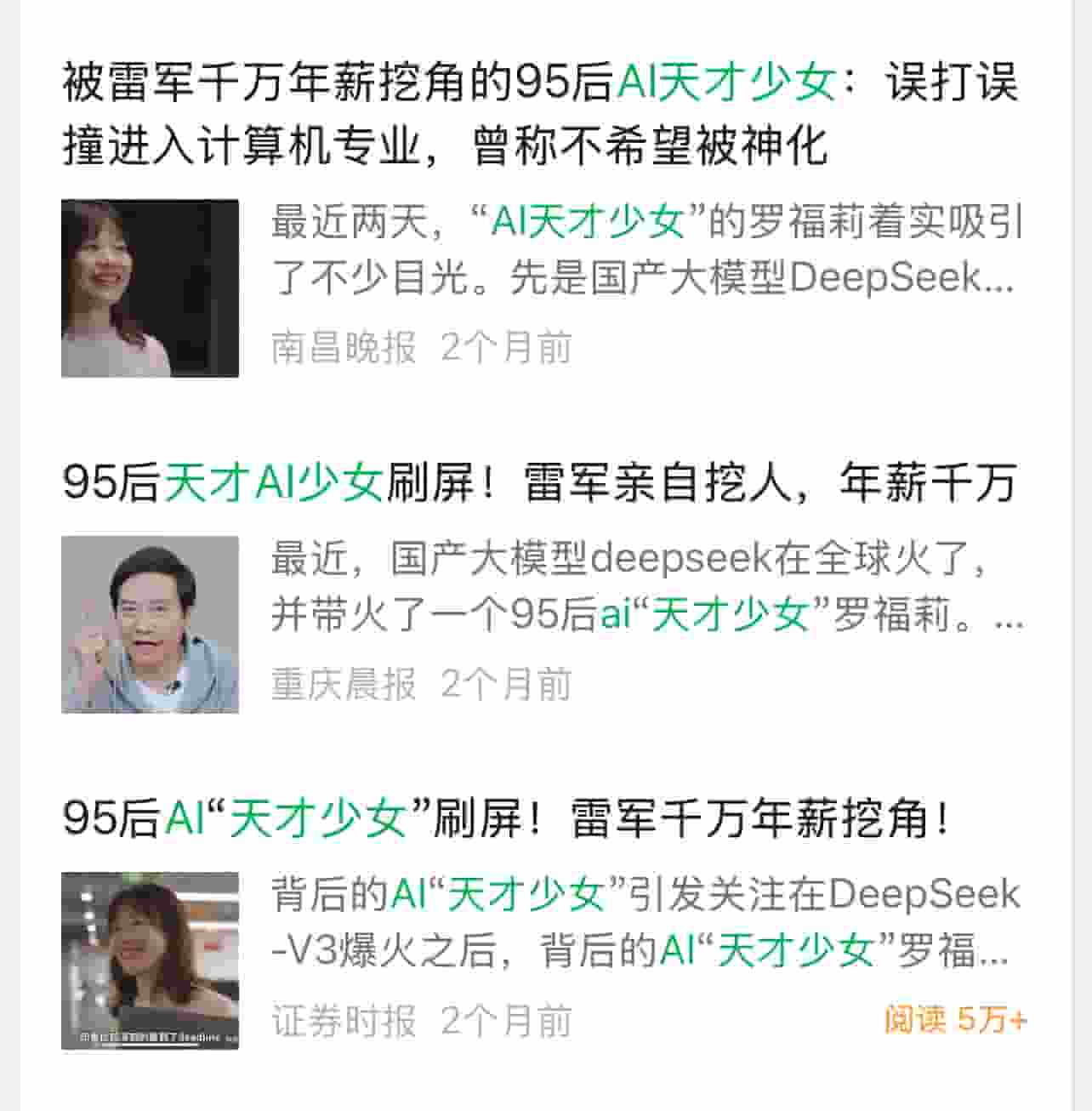 然而,值得注意的是,在回应罗福莉的这一请求时,有声音指出,其实很多发布关于“天才少女”报道的媒体都是业界知名的正规大平台。这似乎意味着,罗福莉所面对的舆论环境远比她想象的要复杂和广泛。