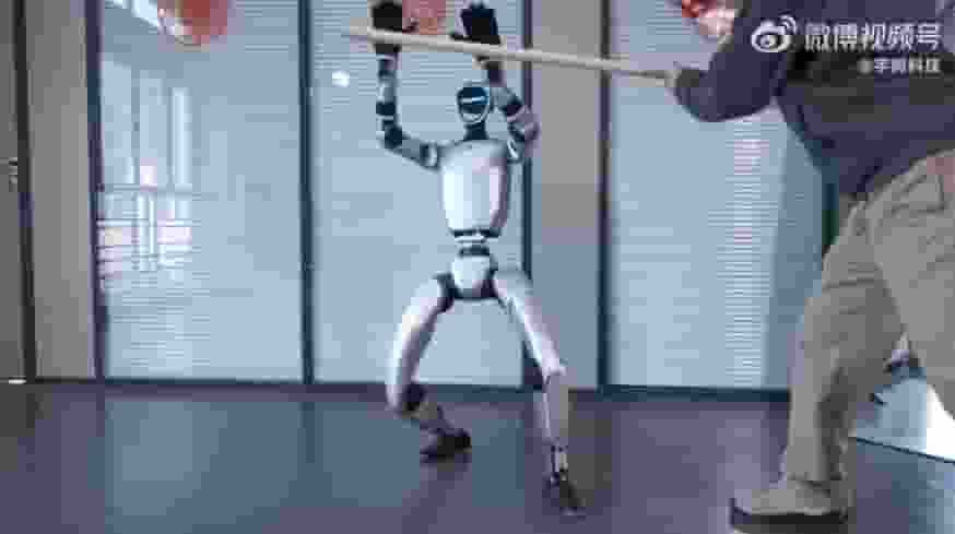 视频中,一名工作人员使用棍棒试图干扰正在跳舞的机器人,但G1展现出了惊人的稳定性和灵活性,完全没有受到干扰的影响。这一场景不仅证明了机器人的舞蹈技能,也彰显了其在复杂环境中的适应能力。