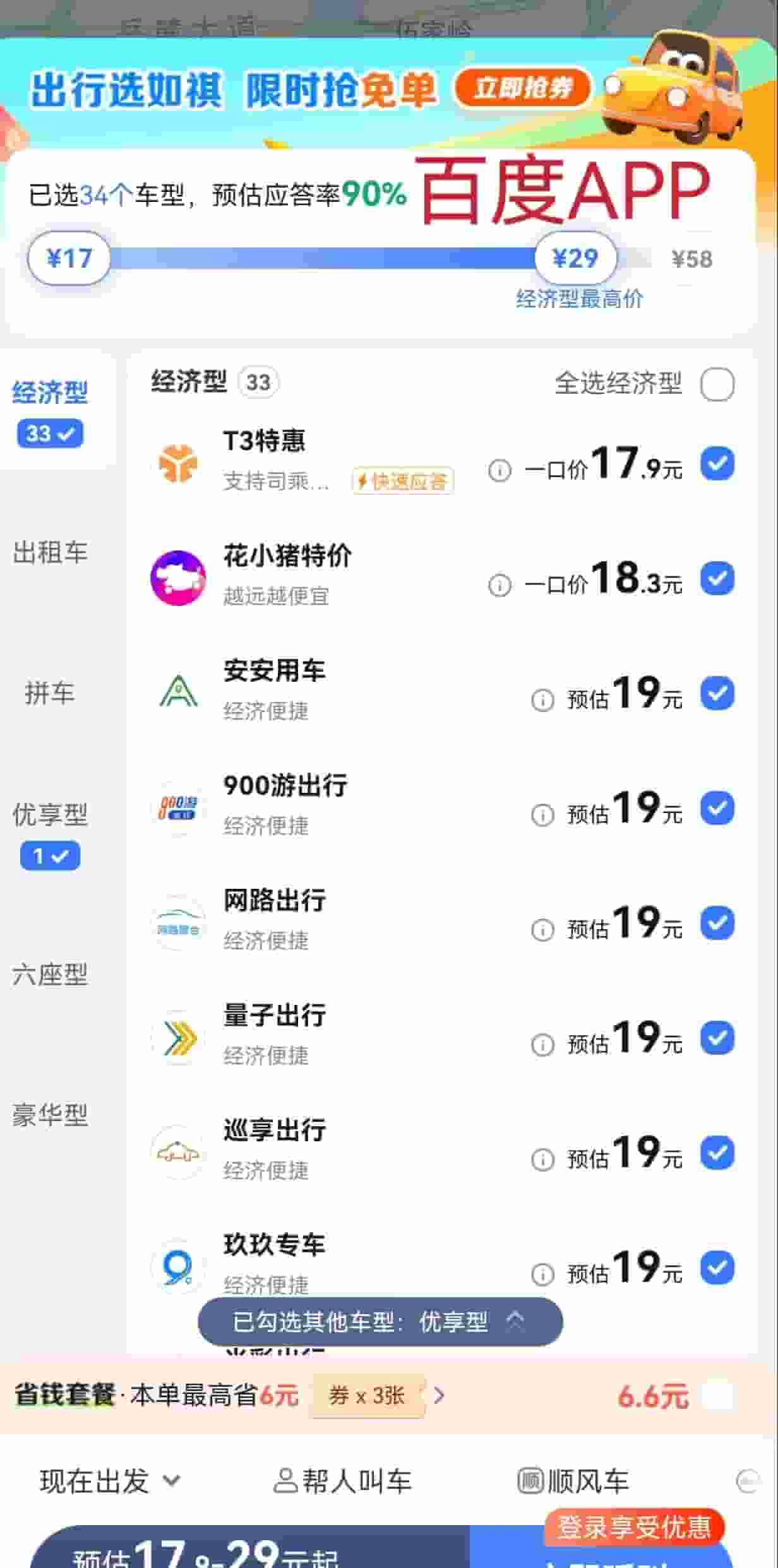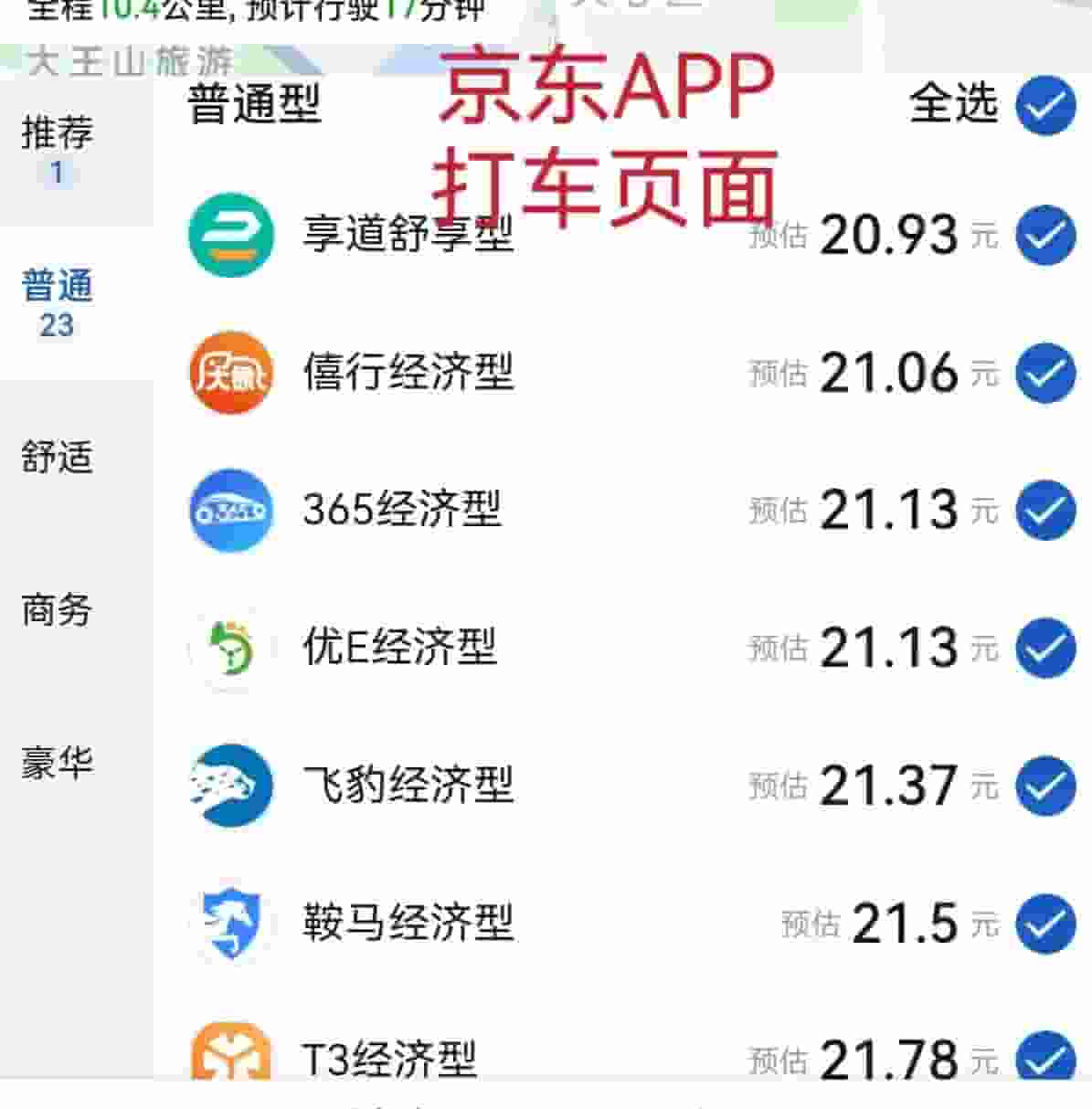 记者还注意到,京东打车服务的车型选择非常丰富。普通款车型有23种,舒适款车型有12种,商务款车型有6种,豪华款车型则有2种。这样的车型选择,无疑能够满足不同用户的出行需求。