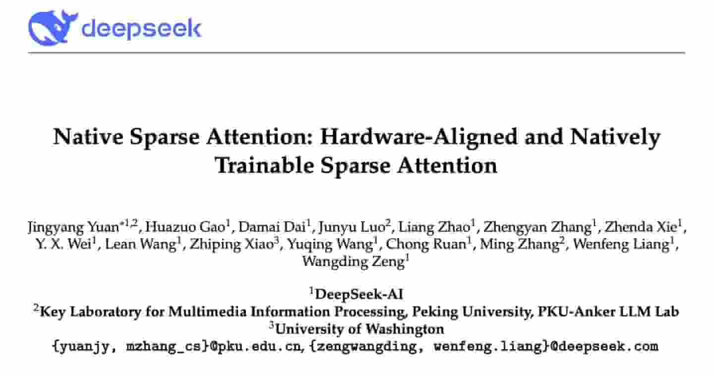 DeepSeek发布NSA技术,硬件对齐稀疏注意力加速推理降成本