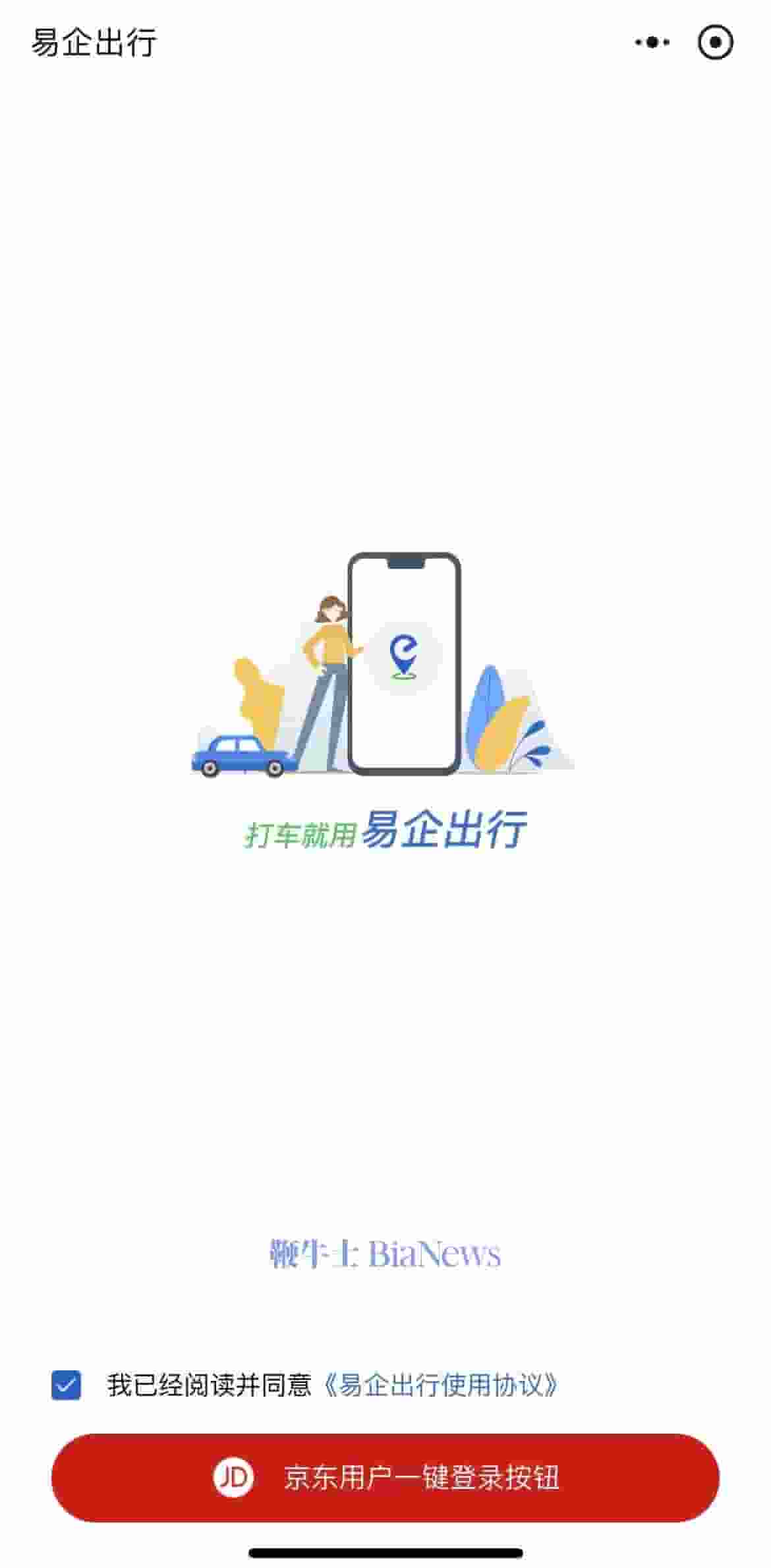 进一步点击进入“国内打车服务”后,用户会被引导至“易企出行”平台。这一跳转过程流畅,无需额外的注册或验证步骤。