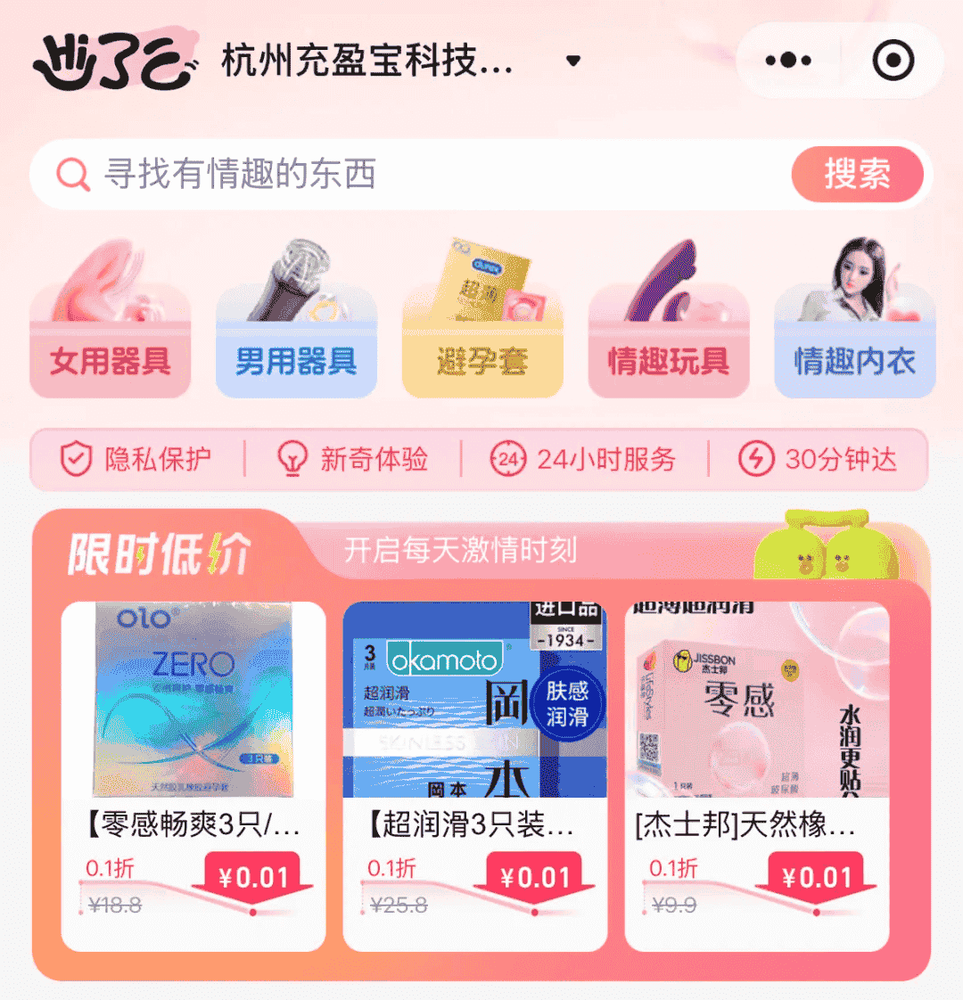 值得注意的是,女性悦己消费潜力的释放,为情趣用品市场带来了新的增长点。在社交平台上,关于女用情趣产品的推荐贴日益增多,女性消费者开始大方分享自己的购物体验和心得。饿了么旗下的成人情趣用品配送平台“Hi了么”在设计上也充分考虑了女性用户的偏好,将女用器具放在产品分类的首位,并采用粉色为主色调,以满足女性用户的审美需求。