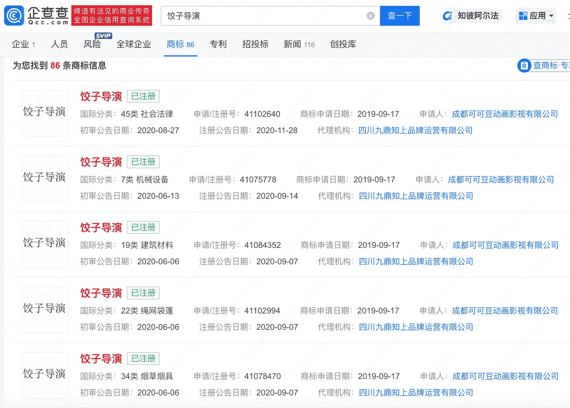 值得注意的是,《哪吒之魔童闹海》的出品方之一成都可可豆动画影视有限公司,已经成功注册了多枚“饺子导演”商标。这一举措不仅保护了导演饺子的个人品牌,也为其未来的商业活动提供了法律保障。据悉,导演饺子(本名杨宇)通过间接方式持有该公司56%的股权,显示出他对于公司的重要影响力和参与度。