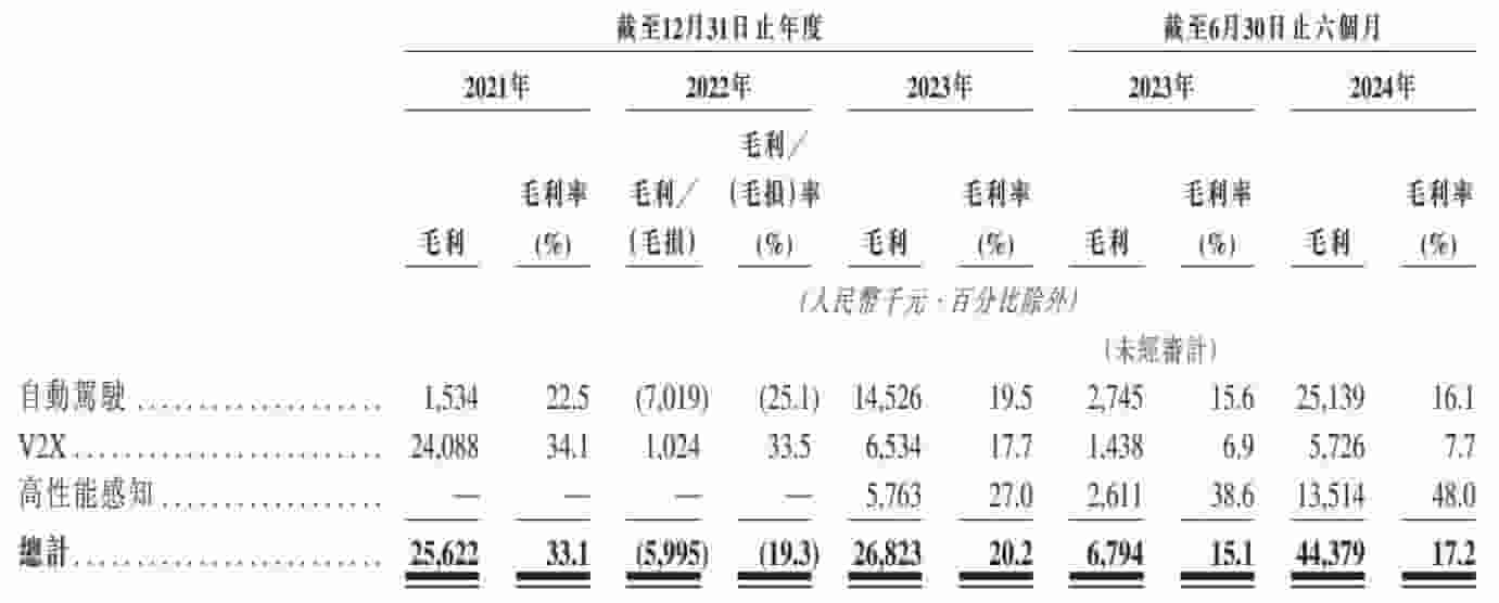 然而,尽管营收增长迅速,希迪智驾的盈利能力却面临挑战。其毛利率从2021年的33.11%下滑至2024年上半年的17.17%,主要因为自动驾驶业务和V2X业务的毛利率均偏低。自动驾驶业务,尤其是矿卡业务,虽然市场前景广阔,但当前毛利率仅为16%左右。V2X业务则因市场竞争和客户债务压力,毛利率持续下滑。
