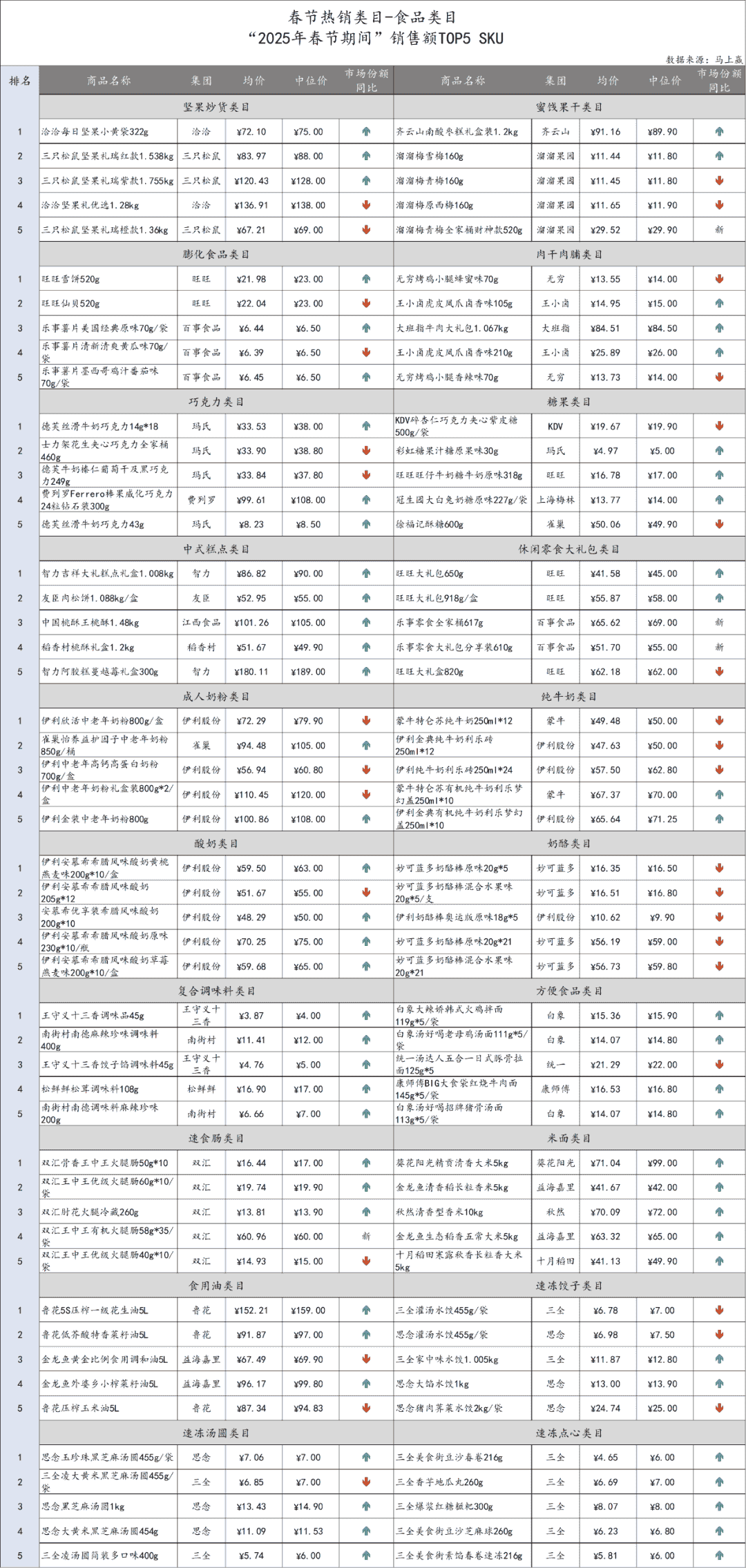 在类目选择上,我们聚焦于与春节消费场景高度相关的四个场景,共涉及31个具体类目。这些类目涵盖了食品、饮料和酒等多个方面,旨在全面反映春节期间的消费趋势。