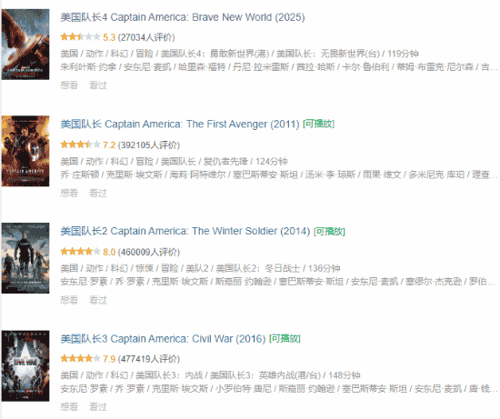 近期,备受瞩目的漫威新作《美国队长4》终于在大银幕上与观众见面,然而,其首映后的反响却远未达到预期的高度。据豆瓣网的数据显示,该片目前的评分仅为5.3分,这一成绩使其成为“美国队长”系列中评分最低的一部,有超过86%的观众给予了三星或更低的评价。