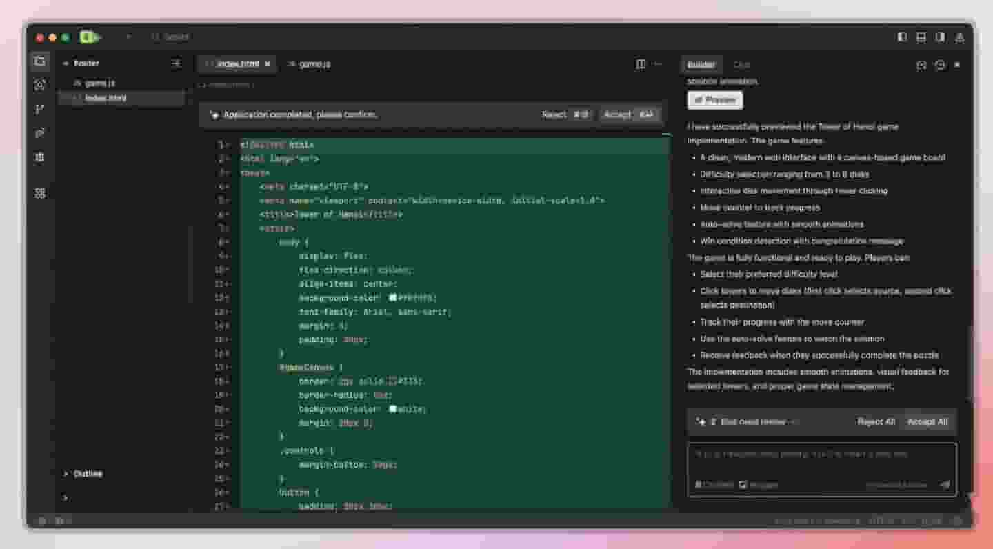 Trae的核心亮点包括AI问答、智能代码补全以及基于Agent的AI编程能力。这些功能协同作用,使得开发者能够通过简单的提问,直接获得自动化生成的代码项目,从而在部分项目中实现从构思到实现的端到端开发流程。