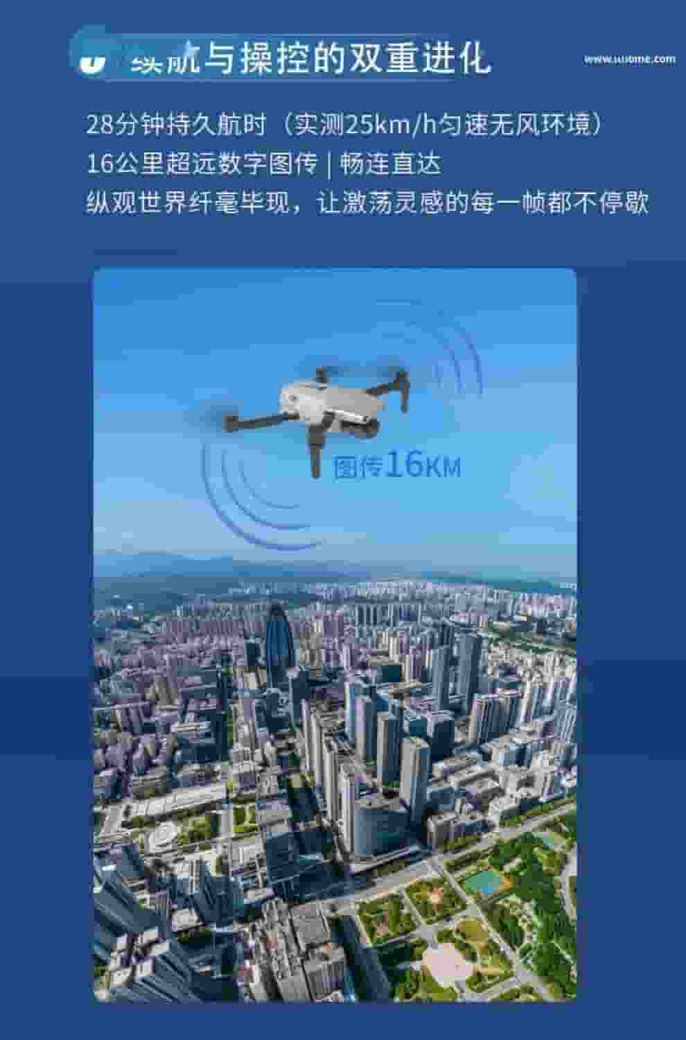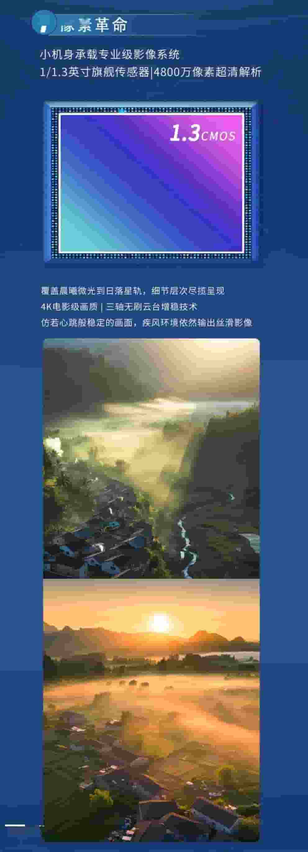 在影像方面,该无人机同样表现出色,搭载了1/1.3英寸4800万像素CMOS传感器,拥有2.4微米融合像素,配合F1.85大光圈镜头,能够捕捉细腻清晰的画面。最高支持4K 30帧视频录制,加之三轴云台的加持,确保了视频拍摄的稳定性与流畅性。