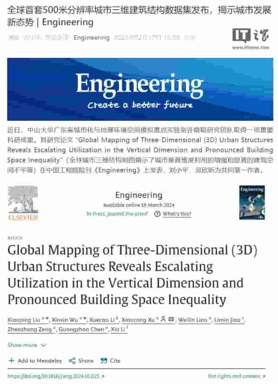 近日,中山大学广东省城市化与地理环境空间模拟重点实验室传来喜讯,许晓聪教授带领的研究团队在城市三维结构研究领域取得了突破性进展。他们的研究成果在国际知名学术期刊《Engineering》上发表,引起了广泛关注。