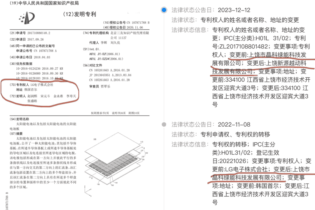 对于发起专利诉讼的动机,“晶晶天”联盟几乎一致声称是为了“保护知识产权和促进创新”。然而,讽刺的是,他们并非这些专利的原始研发者,而是购买者。这些专利最初属于LG集团,2022年LG退出光伏制造业时,将其部分专利出售给了晶科能源。随后,晶科能源将部分专利转让给了天合光能和晶澳科技。
