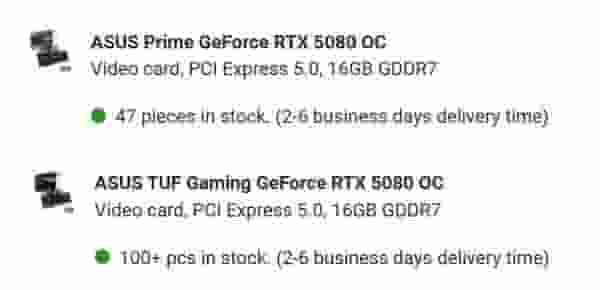 一位来自丹麦的网友揭露,当地知名零售商Komplett库存中至少有147张RTX 5080显卡,包括47张华硕PRIME RTX 5080 OC和超过100张TUF GAMING RTX 5080。尽管这一数量不算庞大,但对于渴望购得显卡的玩家而言,无疑是一个不小的库存。