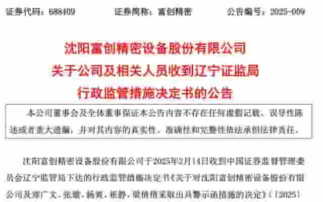 富创精密近日遭遇监管风波,据官方公告显示,公司及多位高管收到了来自辽宁证监局的行政监管措施决定书。这一决定源于富创精密未能及时审议并披露与关联方A公司的交易信息,此举违反了《上市公司信息披露管理办法》的相关规定。