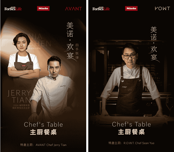近日,德国高端家电品牌美诺Miele,携手在“2024福布斯中国·福厨30评选”中荣获“福厨·新锐风尚主厨奖”的两位杰出年轻厨师——来自深圳AVANT 的主理人田泽宇和来自上海R.O.W.T. 的主厨岳魏,打造了两场美诺欢宴,希望以此引领创新精致餐饮风尚,共庆美好相聚时光。